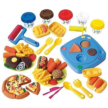 Knetspiel Burger Set - Burger - Sandwich - Hot Dog - und vieles mehr - und vieles mehr, inkl. 5 Dosen Knete, Walze, Formen