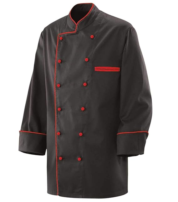 Kochjacke Bäckerjacke Jacke Langarm Schwarz mit rotem Paspel 65% Baumwolle, 35% Polyester Gr. S-3XL, Schwarz, M