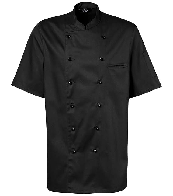 Novaplus Kochjacke Kochbekleidung schwarz kurzarm mit Kockjackenknöpfe