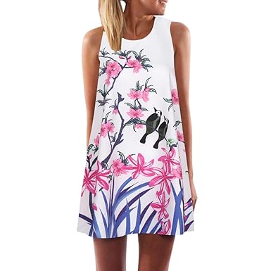 ??stil: casual???????????? Damen Ärmellos Sommerkleid Minikleid Strandkleid Partykleid Rundhals Rock Mädchen Blumen Drucken Kleider Frauen Mode Kleid Kurz Hemdkleid Blusekleid Kleidung,Damen Cocktail Kleid mit Chiffon Poncho Partykleid Kleid für Büro Minikleid,Damen Viskose-Kleid Basic mit Gürtel