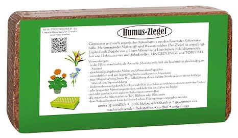 Grosspackung : 24 x 650 Gramm - ergibt mit Wasser aufgequollen ca. 210 Liter lockere Kokoserde. Nie wieder schwere Blumenerde-Säcke schleppen. Torffrei & ungedüngt. Platzsparend und lange lagerfähgig. Mit 4 L Wasser quillt ein Ziegel zu je 9 L Kokoshumus auf. Je wärmer das Wasser, desto mehr Volumen entsteht. Keine Verschmutzung der Hände wie bei herkömmlicher Erde. Universell einsetzbar : ergibt eine feine, lockere Kokos Quellerde für Ihre Pflanzen. Als Aussaaterde bzw. Anzuchterde oder zum Mischen eigener Blumenerde Substrate sowie für Hochbeet, Gemüsebeet oder Blumenkasten. Innen und außen verwendbar. Lockert den Wurzelballen und speichert mehr Wasser. Lieferung mit Pappkarton. Jeder Ziegel ist einzeln in Folie verpackt. Stärkt Ihre Pflanzen : sehr guter Wasserpuffer. Belüftet den Boden und ermöglicht dadurch eine gutes Wurzelwachstum, erleichtert die Nährstoffaufnahme für die Pflanze. Dies führt zu einer kräftigeren Spross- und Wurzelbildung sowie zu besseren Ernteergebnissen. Erhöht die Blütenbildung. Wasser und Nährstoffe sind durch die Pufferwirkung gleichmäßig für die Wurzeln verfügbar. Schimmelhemmend, daher auch für die Aussaat und Anzucht von Exoten gut geeignet. Torffrei & ungedüngt. Gleiches Material wie in den bekannten Quelltabletten. Bestens geeignet, um Kräuter, Gemüse, Zierpflanzen und Exoten aufzuziehen. Die Feuchtigkeit wird sehr gleichmäßig an das Saatgut abgegeben. Durch Kokosaussaaterde verringert sich der Gießaufwand bei der Samenanzucht erheblich. Pur oder gemischt verwendbar. Ohne jeglichen Zusatz, reines Naturprodukt aus nachwachsenden Rohstoffen gewonnen (aus der Hülle der Kokosnuss). Die Kokoserde verschmutzt die Hände während der Verarbeitung nicht. Feine Pikiererde. Quellhumus zur Bodenauflockerung.
