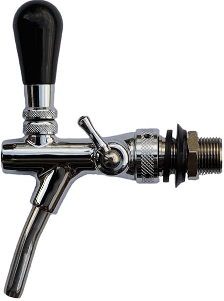 Hochwertiges Messing mit verchromter Oberfläche, glatt und reduziert Schaumbildung Standard-Threading kompatibel mit den meisten Markenhandgriffen Verbinden Sie diesen Wasserhahn direkt mit einem Bier- oder Sodafass Einfach in der Handhabung und Funktion Schwarzer robuster Kunststoff-Wasserhahnknopf für hohe Lebensdauer