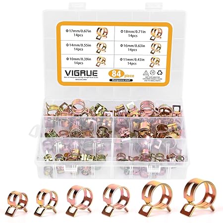 Einfach zu bedienen, druckfest, langlebig und langlebig. Entwickelt, um den Druck gleichmäßig in der Anwendungszone zu verteilen Wird verwendet, wenn der Schlauch schnellen Temperaturänderungen ausgesetzt ist, die eine Ausdehnung und Kontraktion des bei der Montage verwendeten Materials verursachen. Der Federclip hält den Druck während dieses Prozesses aufrecht und verhindert so Lecks. Material: Stahl verzinkt Filmgröße: 6mm 7mm 8 mm 9 mm 10 mm 11 mm 12 mm 13 mm 14 mm 15 mm. 10 verschiedene Größen insgesamt für Ihre Auswahl! (PS: 11mm Clip ist für 11mm Außendurchmesser Schlauch) Lieferinhalt: 10 Stücke Federband Typ Clip