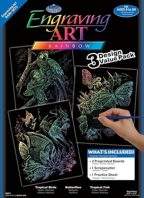 Royal Brush Langnickel 8-Inch by 10-Inch Foil Engraving Art Kit Value Pack, Dolphins Dolphins, Panda, Tiger, Mice, Pups, Otter › Weitere Produktdetails