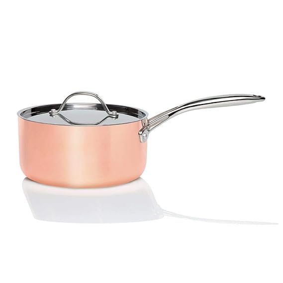Kupfertopf mit Glasdeckel - Optimale Wärmeleitung: Außenseite aus Kupfer, Alu-Kern und hochwertige, matte Beschichtung aus Edelstahl im Topf-Inneren - 16 cm Durchmesser, 1,45 Liter Inhalt