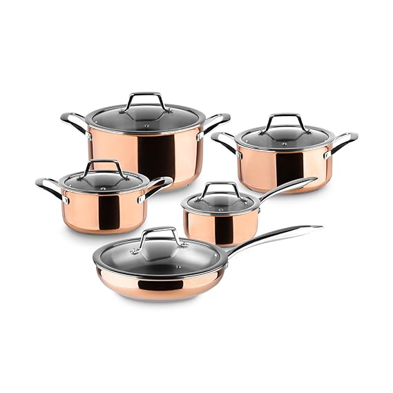 SIMPLE & Co 10-teiliges verkupfertes Antihaft-Kochgeschirr-Set, induktionskompatible keramische Kupfertöpfe und Pfannen Kochg