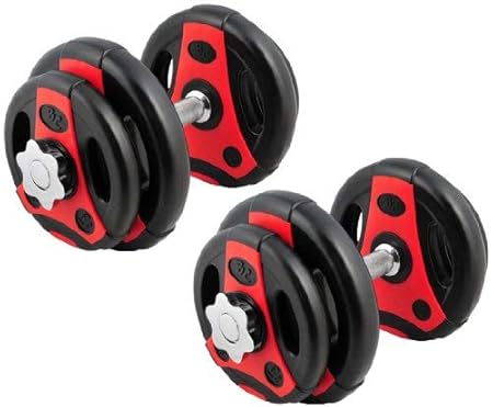 20 kg (2 x 10 kg Set) = 4 x 2,5 kg, 4 x 1,25 kg, 4 x 1 kg, 2 x Hantelstange und 4 x Sterne-Schraubverschluss Länge der Hantelstange: 38 cm, Durchmesser der Hantelstange: 2,5 cm, Hantelstange je 0,5 kg Robust und der Sand läuft nicht aus – Die Hantelstange ist aus Eisen, die Gewichte bestehen aus einer hochwertigen Kunststoffhülle (PE) und sind mit Sand gefüllt. Im Vergleich zu den normalen Gewichten sind unsere komplett dicht und laufen nicht aus. Der Sand rutscht bei einer Drehung auch nicht nach. Und die mitgelieferten Sterne-Schraubverschlüssen gewähren Sicherung der Hantelscheiben Rutschfeste Grifffläche - Die Griffe der Hantelstangen sind mit Kunststoff ummantelt, ermöglichen einen angenehmen Griff, nicht kalt im Winter, und nicht unangenehm ohne Handschuhe, liegen beim Training gut in der Hand Diverse Variationsmöglichkeiten - Die Gewichtsscheiben sind frei kombinierbar, und leicht zu erhöhen oder reduzieren (Sie können nach Ihrem Wunsch die Gewichte von 10, 16 und 20 kg einstellen)