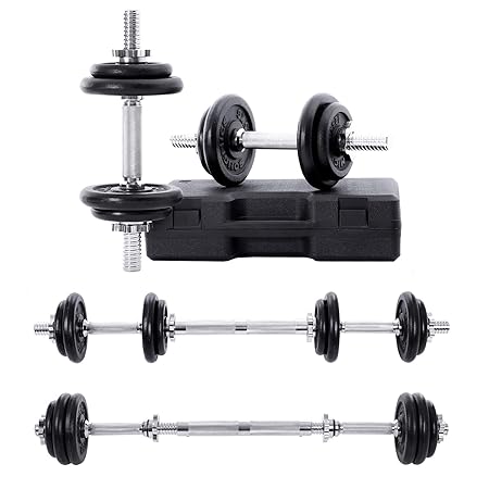 EXTRA ANSCHLUSSGRIFF: Eine zusätzliche Hantelstange mit 20 cm ist im Lieferumfang enthalten, sodass Sie dieses Hantelset in eine Langhantel verwandeln können, um mit einer größeren Bandbreite an Bewegungsmustern trainieren zu können