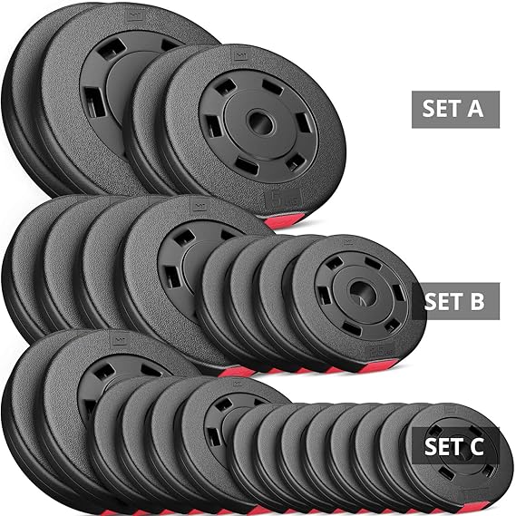 VARIABLE GEWICHTE & LANGLEBIG: 12 Scheiben – 4 x 2,5 kg, 4 x 1,25 kg und 4 x 1 kg – ermöglichen Ihnen, das Gewicht für verschiedene Trainingseinheiten einzustellen; hochwertige PP-Abdeckung mit Betonfüllung ist sicherer zu verwenden, ohne dass Sand austritt
