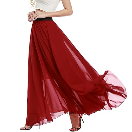 Abollria Damen Chiffon Rock Lange A-Linien Röcke Swing Maxirock mit Unterrock
