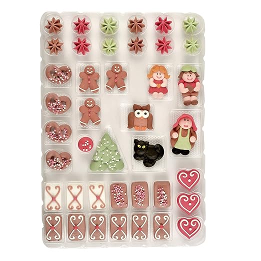 Wunderschöne Zucker-Dekoration für Hexenhäuser oder Lebkuchenhäuser beinhaltet sind Zucker-Figuren, Pilze, Brezel, Herzen, Zuckermänner, Tannenbäumchen, und Mini-Lebkuchen Die Figuren stellen Hexe, Hänsel und Gretel dar. Auch eine schwarze Katze und eine Eule sind in den Sets beinhaltet Eine Einheit hat aus 41 Teile › Weitere Produktdetails