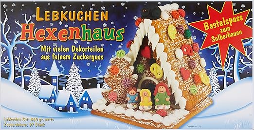 1x Lebkuchenhaus Bausatz (bestehend aus mehreren Lebkuchen-Platten zum selber Aufbauen) Größe des aufgebauten Haus: ca. 17x16x16cm Sämtliche Teile sind aus Lebkuchenteig, wodurch das komplette Haus essbar ist Der Hexenhaus-Bausatz macht Groß und Klein Spaß, ist aufgebaut eine schöne individuelle Dekoration und ideal zum naschen Bei uns erhalten Sie sämtliches Zubehör, mit dem Sie Ihre Hexenhaus dekorieren können und ebenfall Zuckerguss, der als 'Zement' zum Hausbau dient, damit alles zusammenhält › Weitere Produktdetails