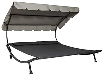 Die Liege bietet unabhängigen Platz für zwei Personen. Der Eine kann also schaukeln, während der Andere ruhig schläft oder liest. Die beiden Liegeflächen können entweder gegenüber oder einfach nebeneinander angebracht werden. Die gemütlichen, weichen Auflagen, sowie das Sonnendach bestehen aus pflegeleichtem, UV-beständigem und wasserabweisendem Polyester (100%). Das XL-Sonnendach sorgt für ausreichenden Schatten. Aufgebaut misst die Liege ca.: L 223 x B 195 x H 225 cm