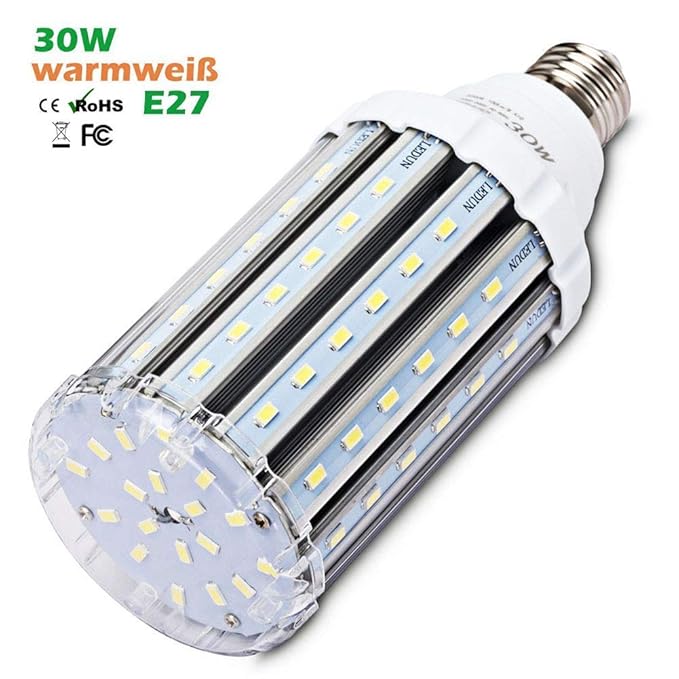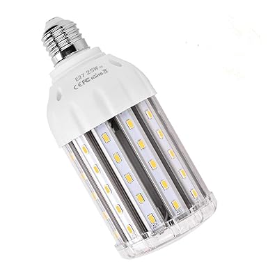 SUPER BRIGHT - 25 Watt Maislicht warmweiß, Leistung von 2000 Lumen, 5736 SMD,3000K. Einsparung von 90% der Energie im Vergleich zu CFL, Natriumdampflampen und Halogen-Hochdruck-Natrium und Metallhalogeniden. EINZIGARTIGE HEAT RADIATION DESIGN - Wärmeableitung Leistung, um eine lange Lebensdauer zu gewährleisten.Wir bieten 1 Jahr kostenlose Garantie. HOHE LEISTUNG - Kein Aufwärmen, Farbwiedergabeindex: RA> 80, Kurzschlussschutz, Hochtemperaturschutz, hitzebeständiges PC-Material. 360 ° Shining - keine tote Ecke, kein Flimmern, gleichmäßige und stabile Lumineszenz. EINFACHE INSTALLATION - Direkt an die Schraube E26 der Standardschraube anschrauben, einfach einschrauben. Bitte beachten Sie, dass in einigen Fällen das Vorschaltgerät beim Wechsel zur LED überbrückt werden muss. Die meisten sind Plug-and-Play, aber bitte überprüfen Sie (LED verwenden einen Treiber, kein Ballast). WEITERE ANWENDUNGEN - Großartig für Garage, Auffahrt, Lagerhaus, Scheune, Terrasse, Hof, Garten, Straße, Büro, Schule, Krankenhaus, Einkaufszentrum, Supermarkt, Bahnhof, Restaurant, Hotel, Werkstatt usw., wo überall helles Licht benötigt wird. › Weitere Produktdetails