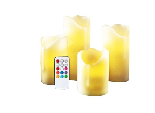 4 Echtwachs LED Vanillekerzen multicolor mit Fernbedienung Batterien pro Kerze: 2 AA (nicht inkl.) mit Fernbedienung (inkl. 1x CR2025 Batterie) ideal für eine Entspannende Atmosphäre für das ganze Haus