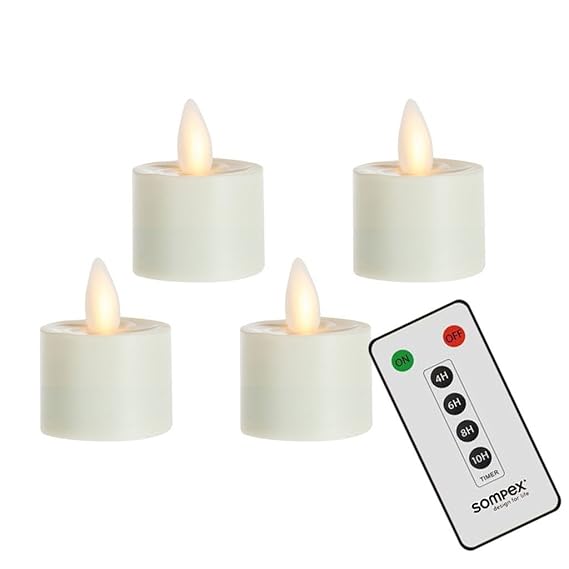 sompex 4er Set Flame LED Teelicht XL 39010 Elfenbein mit Fernbedienung