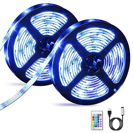 ?Sorgenfreier Gebrauch?LED-Beleuchtung ist umweltfreundlich, keine Strahlung, kein Flimmern, für das menschliche Auge harmlos. Keine weiteren Accessoires erforderlich, Praktische Stimmungsbeleuchtung?5Mx2 RGB LED Streifen, 44 Tasten Fernbedienung, IR-Empfänger, Netzteil und Verbindungen.