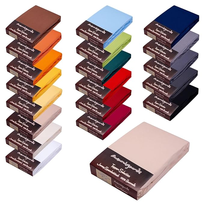 ? SUPER WEICH UND PASS GENAU - Unsere Spannlaken sind Doppelt so dick wie herkömmliches Jersey Gewebe - höhere Faserdichte - Langlebiger robuster und stärker - 100% Baumwolle mit Einlaufschutz, angenehm weich und strapazierfähig, mit Rundumgummizug - sitzt Perfekt und faltenfrei auf der Matratze für eine stehghöhe zw. 14 - 30 cm ? AUSERGEWÖHNLICHE QUALITÄT - Über 20 Jahre Erfahrung in Sachen Heimtextil und Bettwaren wir sorgen für ein gutes und angenehmes Schlaf Komfort Saugfähiger und atmungsaktiver - ein elastisches Band sorgt für einen stabilen und guten Sitz auf der Matratze 'Das elastische Rundumgummi ist doppelt eingenäht' ? MATERIAL - 100% gekämmte Baumwolle - Doppel Jersey ist 2 mal so dehnbar - Gewicht: ca. 220g/m² - zertifiziert nach OEKO-TEX Standard 100 für 'Textiles Vertrauen'. Die hohe Dehnbarkeit des Jersey Stoffs sorgt außerdem für eine optimale Passfor ? PFLEGELEICHT - Maschinenwäsche bis 60 °C (weiß bis 90 °C), Trocknergeeignet und bügelfrei, bitte bei der 1. Wäsche separat waschen ? 100% KUNDENZUFRIEDENHEITSGARANTIE - wir sind in der Qualität dieses Premium-Produkts so überzeugt, dass wir Ihnen eine uneingeschränkte 30 Tage Geld-zurück-Garantie anbieten