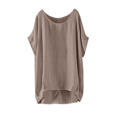 Goosuny Sommer T Shirt Damen Leinenbluse Kurzarm Rundhals Lange Leinen Top Shirts Tunika Locker Einfarbig Blusenshirt Blusent