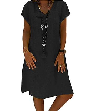?Einfach und charmant Stil, charme und anmut zeigen ihre Kurven. ?Gelegenheit: Strand, Urlaub, Street-wear, Alltag, Casual, Freudenfest, Picknick, Party, Cocktail usw. Kurzarm Leinen Baumwolle ?Material: Baumwolle und Leinen, aus feinem Stoff, weich und bequem. Mit einer lockeren Passform schneiden. ?Schlichtes Design, klassik und zeitlos,komfortabel und Stilvoll. Soft und flexiblen Material, angenehm zu tragen. ?Schauen Sie bitte die Größentabelle an der Linken, Wir hoffen,Sie die geeigenet Größe wählen können, Wünschen Ihnen eine gut Einkaufserlebnis.