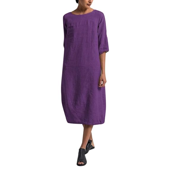 Dieses sommerkleid demme ist ein Rundhals,3/4 Ärmel,weich,leicht und einzigartiges design Leichtes Material, das Sie an einem heißen Sommertag kühl und komfortabel hält. Leinen A-Linie,Solid Casual Leinenkleid Anlässe: Ideal für Sommerurlaub, Casual, Büro, Strand, Datum, Party, Alltag. Pflegehinweis: Handwäsche Oder Maschinenwäsche.