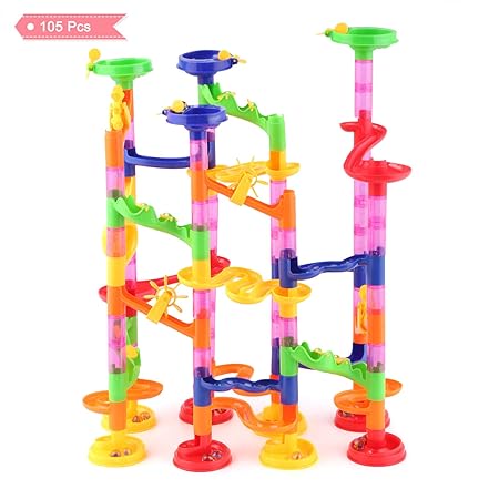 NextX Kugelbahn Murmelbahn Motorikspielzeug Bausteine Set für Jungen und Mädchen ab 3 Jahre 105 Teile