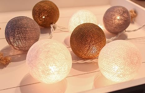 Vielseitig: Stimmungsvolle Beleuchtung für Partys, Garten, Weihnachten o. Bars - In Weiß-Grau-Braun Dekorativ: Die Baumwollfäden verleihen den Kugeln besonderen Charme - Angenehmes, warmweißes Licht 20 Kugeln: Die Lichtkugeln lassen sich auf vielfältige Weise anordnen - Keine externe Stromquelle LED: Die LED Lichterkette überzeugt durch einen geringen Stromverbrauch und eine sichere Nutzung Batteriebetrieben: Die Leuchtkugeln funktionieren mit 3 AA-Batterien (nicht dabei) - Mit Schalter