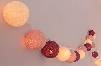 Lichterkette Baumwolle LED Textillichterkette Textilkugeln Luminaria Party/Hochzeit Licht Dekoration mit 20 Kugeln USB pink,