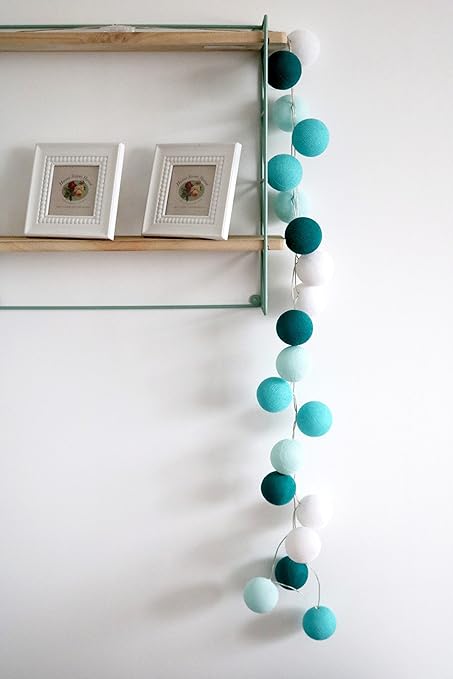 Cotton Ball Lights Mint 20 LED Lichterkette mit USB Anschluss, Baumwolle, Aqua Light Brown-Sea Green