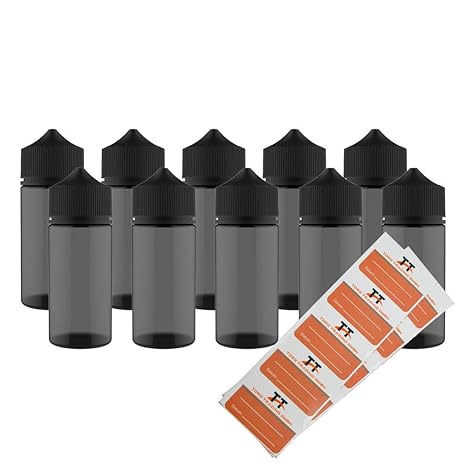 ? Jetzt besseres Befüllen, da abdrehbare Spitze. INHALT - 10 x 100ml Liquidflaschen inkl. 10 Etiketten mit weißen Schraubverschlüssen, Kindersicherung und Dosierspitze.