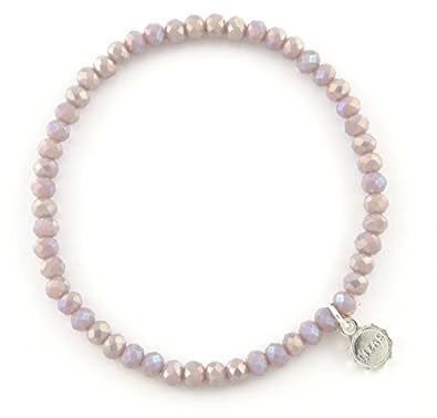 Cooles Lizas Elasticarmband 56mm Durchmesser aus 4mm grossen facettierten Kristallperlen in der Farbe arktis. Der Charmanhänger ist versilbert.