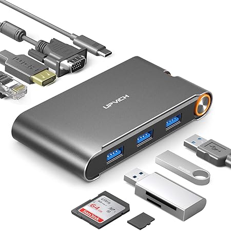 ??9 Ports Erweiterung in einem Adapter?Übersicht: USB 3.0 Hub (5Gb/S) x 3, Fast Charge Port x 1 (5V, 2A), Type-C PD Netzteil (Max.90 W ) x 1, 4K HDMI (Für Monitor, Beamer usw.) x 1, Ethernet Port x 1, SD/TF-Leser x 1. Es ist kompatibel mit meisten Typce-C Laptop und Smartphone: Apple MacBook, Microsoft Surface, Dell XPS, Lenovo, HP, Acer, Samsung S10, Huawei Matebook usw. ??4 Hochwertige V-Chips & 90W PD Netzteil?Die starke Multifunktionen werden von 4 selbstständigen V-Chips verwaltet, übermittelt verschiedene Funktionen effizient sowie Datenübertragung, Video, Audio, Ethernet LAN und Stromversorgung. Der Adapter unterstützt 90W PD Netzteil durch das Type-C Port. Geeignet für Ihre USB C Laptop und Smartphones aufzuladen, bietet kontinuierliche Leistung während der Arbeit, Spielen, Film an. Ihr Type-C Gerät bleibt immer mit voller Leistung am ganzen Tag. ??4K HDMI & RJ45 Gigablit Ethernet? Der Adapter unterstützt eine hohe Auflösung bis zu 4K@30HZ. Somit überträgt der Bildinhalt direkt von Ihrem Gerät auf anderem Fernseher, Monitor, Beamer usw. Der RJ45 Gigabit Ethernet Anschluss bietet außer Wi-Fi Signal eine andere Möglichkeit, einen stabileren schnelleren Internetzugang (Max. zu 1 Gbit/s) an Ihrem Type-C Gerät zu verbinden. Hinweise: Bei Verwendung der beiden Ports, schließen Sie bitte mit PD Netzteil an, um genügend Leistung zu unterstützen. ??Superschnelle Datenübertragung 5 Gbit/s?4 x USB 3.0 Ports bieten die Möglichkeit, die USB Geräte mit Ihrem Type-C Laptop oder Smartphone einwandfrei verwenden, bzw. Daten zu übertragen. Z.B. Maus, Tastatur, USB Sticks usw. Die Übertragungsgeschwindigkeit erreicht 5 Gbit/s. Die Eingebaute SD & Mirco SD Kartenleser ermöglichen das schnelle Verfahren von Dateien (Max. 800 Mbps) von universalen SD/Micro SD-Speicherkarten, ideal zum Übertragen für Dateien. ??Zuverlässige Qualität & Lebenslange Garantie?Das Gehäuse des Adapters ist aus Aluminium, leitet die Wärme ab, bildet mit den Chips das leistungsfähige Kühlsystem, kontrolliert die Temperatur bei Arbeit unter 50 Grad. Es ist staatlich mit CE zertifieziert, die Qualität ist von VANMAAS Labor und andere Organisation kontrolliert und mit mehreren Modelle getestet, die Kompatibilität ist sehr breit. Wir versprechen Ihnen eine Lebenszeit-Garantie, bieten Ihnen auch freundliches Kunden-Service. › Weitere Produktdetails