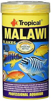Flockenfutter für Malawiseecichliden der Mbuna Gruppe Flockenfutter für alle pflanzenfressende Cichliden sorgt für ausgezeichnete Gesundheit und herrliche Farbenpracht Fütterungsempfehlung: mehrmals täglich in kleinen Portionen › Weitere Produktdetails