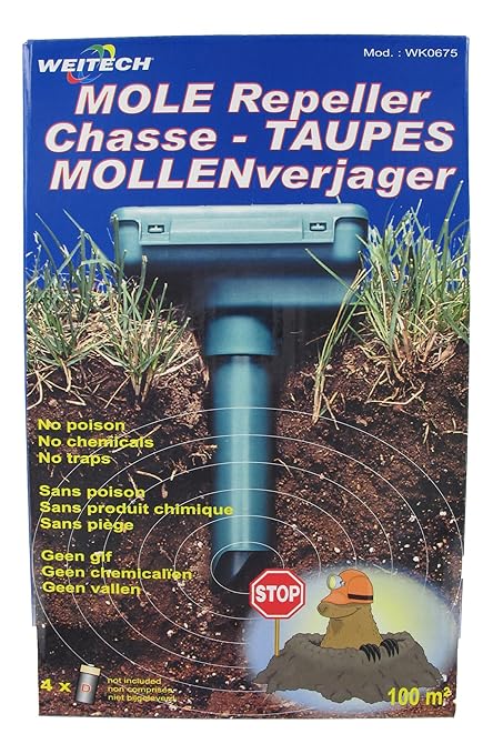 chasse-taupes 100-percent Edelstahl und étanches. einfach zu platzieren. 1 Maulwurf-Stopp von 600 +/1200 m Lourde, 500 m Erde sablonneuse. Unschädlich Anti-Maulwurf Funktioniert in 3 bis 4 Monaten auf 4 wiederaufladbare Batterien.