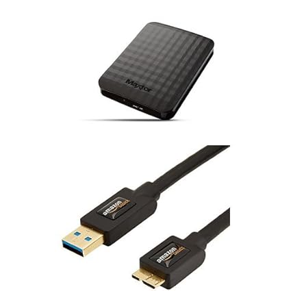 Maxtor M3 2 TB - externe 2.5' Festplatte, USB 3.0, schwarz - HX-M201TCB/GM und AmazonBasics USB-3.0-Kabel A-Stecker auf Micro