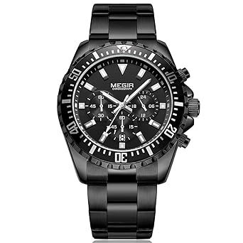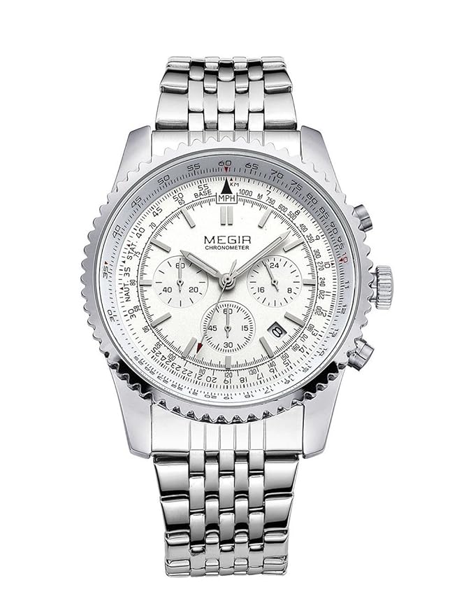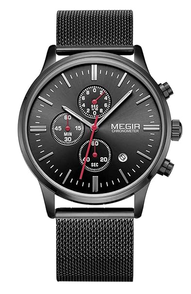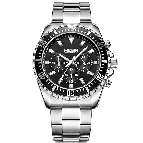 MEGIR-Uhr für Männer in luxuriösem, schlichtem Design. Perfektes Geschenk für Männer für Hochzeit, Festival, Weihnachten usw. MEGIR-Uhr mit rundem Zifferblatt mit digitalen Stundenmarkierungen und automatischem Kalender, Leuchtfunktion, leicht ablesbare Zeit bei Dunkelheit. Edelstahlarmband und Aluminiumgehäuse mit Sicherheitsfaltschließe, keine Beschädigung der Kleidung oder Verletzung der Hände. Megir Herren-Sportuhr mit Quarzwerk und Digitalanzeige, mit 3 integrierten Zifferblättern für Minute, Sekunde, Zehntelsekunde. Genaue Zeitmessung und lange Nutzungsdauer. Wasserfeste Uhr bis 30 m, beständig gegenüber Spritzwasser und Regen. Nicht geeignet zum Tauchen, Schwimmen, Schnorcheln oder für Arbeiten, bei denen es zu häufigem Kontakt mit Wasser kommt, für den Alltagsgebrauch geeignet.
