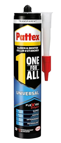 Der Pattex All in One Kleber ist extrem elastisch und für viele Materialien, wie z.B. Holz, Ziegel, Keramik und Stein geeignet - Für universellen Gebrauch Der One for All Kraftkleber ist unempfindlich gegenüber Wasser sowie UV-Strahlung und bietet eine dauerhafte, robuste Qualität Dank einer Repositionierbarkeit von ca.15 Minuten besteht ausreichend Zeit für eventuelle Korrekturen beim Auftragen des Klebers Verwendbar sowohl zur Montage als auch als Fugenmasse für Bodenbeläge oder Sanitär-Geräte / Temperaturbeständiger Alles-Kleber bei -30 °C bis + 80 °C Lieferumfang: 1 x 390g Pattex Universal Klebemittel weiß / Kombination aus Montageklebstoff und Fugendichtmasse, geeignet zum Kleben und Dichten / Im Original 18 Monate haltbar › Weitere Produktdetails