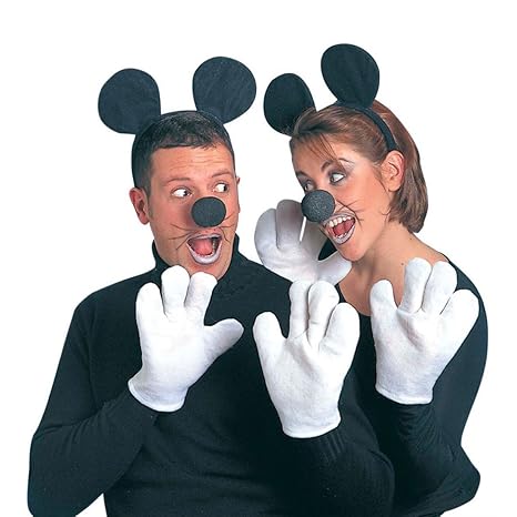 DOPPELPACK mit Maus Haarreifen (Mouse) Ohren + Mäuserich Haarreifen mit Maus Ohren in schwarz im Set mit 2 Paar weißen Handschuhen tolles Set für Ihre Verkleidung als Maus Pärchen beim Karneval / Fasching, Halloween oder bei der nächsten Motto Party Einheitsgröße: passt zu verschiedenen Kopfumfängen und Handgrößen Material: 100% Polyester Jedes Ohr ca. 8cm breit, Schleife ca. 7cm hoch › Weitere Produktdetails