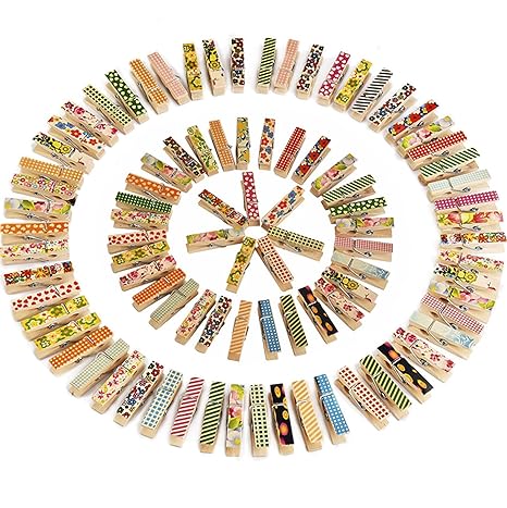 Sepkina 100 kleine süße Mini Zierklammern Dekoklammern Klammern Holz Wäscheklammern Miniklammern Holzklammern Natur Mix bunt