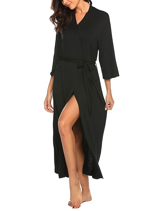 Maxi-Lang Stil Damen Kimono Bademantel: bis Knöchel. Vier optionale Farben: Schwarz, Weiß, Rot und Dunkelblau.