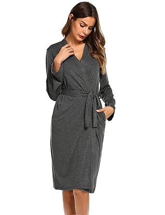 ?Weiches reines Baumwollgewebe? 95% Baumwolle, 5% Elasthan. Hergestellt aus reiner Baumwolle, super bequem und atmungsaktiv, ist die Haut schonend beim Tragen. ?Bequemes und elegantes Design? Elegantes, schräges V-Ausschnitt-Design mit praktischen 3/4 Ärmeln, Fronttaschen, Gürtel, unterhalb des Knies, für jede Körpergröße geeignet, fühlt sich angenehm und leicht an. Welches ist sehr bequem, das Telefon, die Brille oder den Stift zu setzen. 95% Baumwolle, 5% Elasthan ?Women Dressing Gown?These Dressing Gown Is for All Seasons, It Can Be Used for Bath, Hotel, Pool, Spa, Gym, Saunas or Lounging Around Home to Release Your Body and Soul Freely. ?Included Package & Care?One Kimono Robe and A Sash Tie, Machine Washable, Hand Wash Recommended, Tumble Dry or Hang Dry, Do Not Dry. ?Size Chart?Please Refer to The Sizing Information in The Image or Product Description to Ensure You The utmost Satisfaction Possible with This Product.