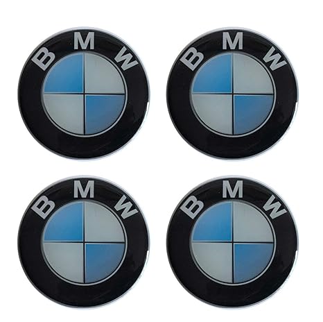 4 x Nabenkappen / Nabendeckel mit BMW-Logo 68 mm blau weiß Verzierung für Felgen aus Legierung