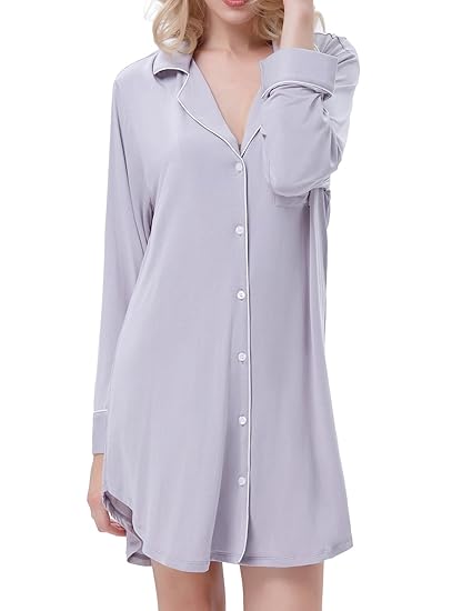 Size?S/36-38,M/40-42,L/42-44,XL/44-46,XXL/48-50 Nachtwäsche Pyjama Nachthemd V Ausschnitt Damen Hemdkleid 95 % Viskose und 5 % Elstan Langarm und Knopfleiste Nachtwäsche oberteil Casual Tunika T-Shirt blusekleid negligee Langärmelig Nachthemds kombinieren Stil des feinen Materials, bequem jeden Abend zu verbringen Warm und komfortabel.Muttertag Gift Geringes Gewicht Material mit seidiges Gefühl für bequemen Schlaf. Großes Geschenk für Familie oder Freunde.