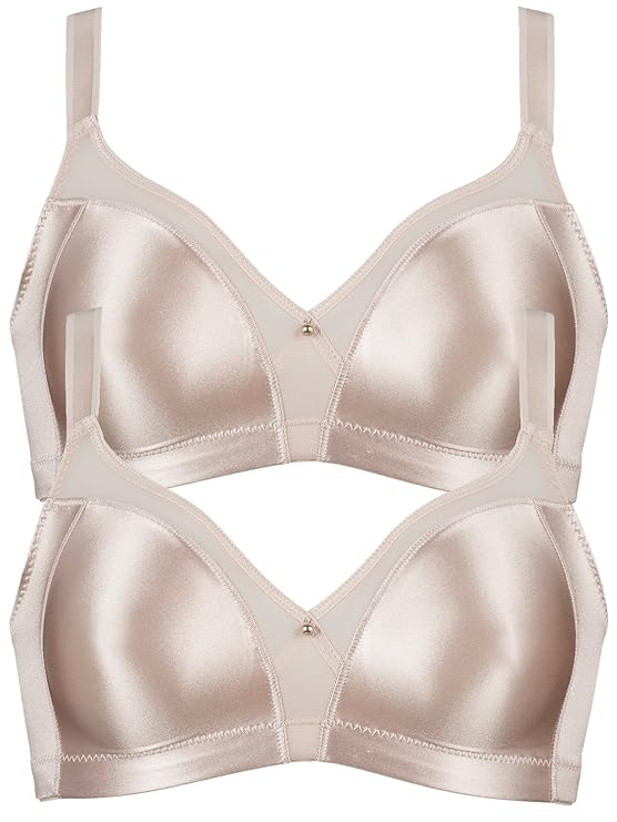 Marke NATURANA Minimizer BH ohne Bügel - 5252 92% Polyacryl, 8% Elasthan Im 2er Sparpack - Aus Satin Stoff Gepolsterte Entlastungsträger - Starke Blenden an den Cups Seiten Spezieller Schnitt für eine optisch kleinere Brust