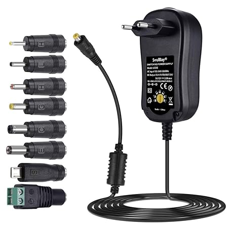 SoulBay 3V-12V 36 Watt Universal AC/DC Adapter Schaltnetzteil Ladegerät inkl. 8 Verschiedende Adapter Stecker für Haushaltsel