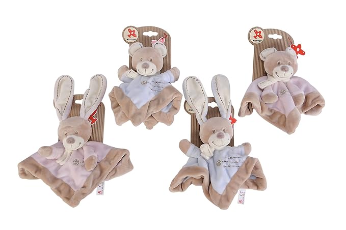 NICOTOY – Plüschtiere und Kuscheltiere – Schmusetuch Hase Semi flach – Farbe: Hellrosa Schal Bandana Taupe – 21 x 21 cm – Plü
