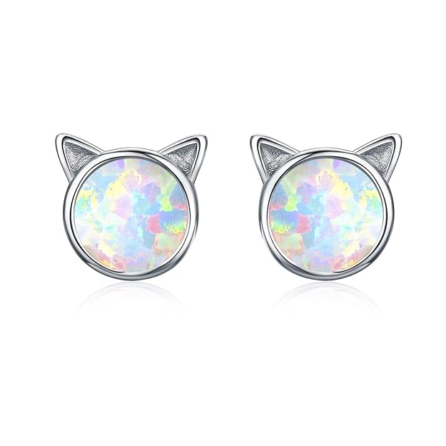 Weiß Opal Anhänger Kette / Ohrringe Ohrstecker aus 925 Sterling Silber für Frauen Mädchen Baby Kinder