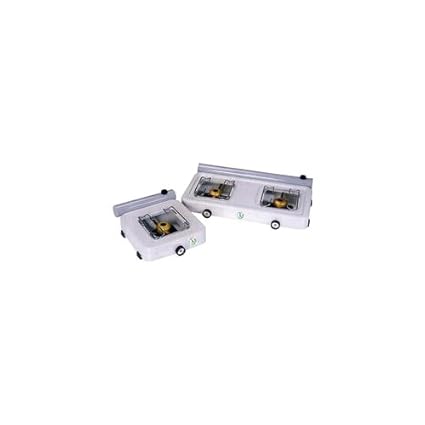 Zweiflammig. Pulverbeschichtetes Gehäuse. Topfrost verchromt. Brenner regelbar. Leistung 2 x 1