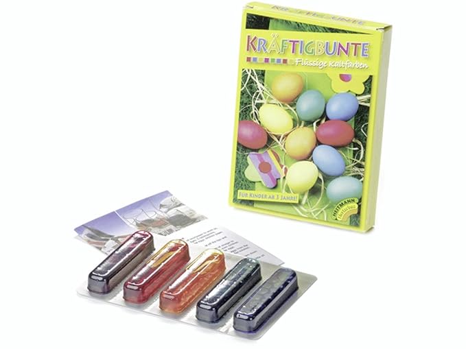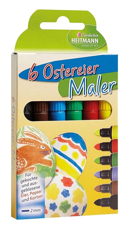FARBENFROH: In diesem Paket von Heitmann erhalten Sie 5 verschiedene Farben. Ihre Ostereier können somit in Grün, Gelb, Blau, Rot und Orange gestaltet werden. So entsteht für Ihr Osternest eine farbenfrohe Zusammenstellung an bunten Eiern, die vor allem Kindern einen großen Spaß bereiten werden.