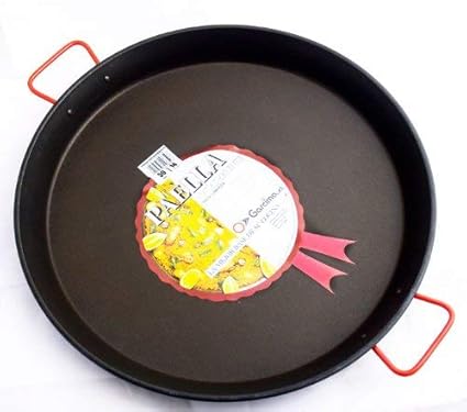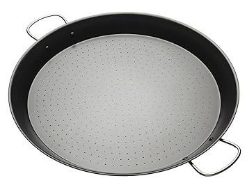 ? Flache Paella-Pfanne aus Kohlenstoffstahl mit XYLAN-Antihaftbeschichtung und zwei Griffen. ? Ideal für die Zubereitung von leckerer Paella im Original-Stil für 6 bis 8 Personen. ? Die XXL Pfanne ist kompatibel mit allen Kochfeldern inklusive Induktion. ? Die Bratpfanne hat ein traditionelles Design mit stabilen Griffen. Einfach in der Handhabung und durch die Antihaftbeschichtung leicht zu reinigen. ? Paella-Pfanne - Farbe: schwarz - für 6 - 8 Personen - Material: Kohlenstoffstahl - XYLAN-Antihaftbeschichtung - Griffe - induktionsgeeignet - Größe: ca. 46 x 56,5 x 4 cm